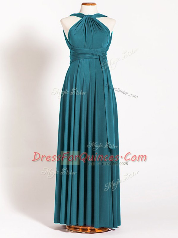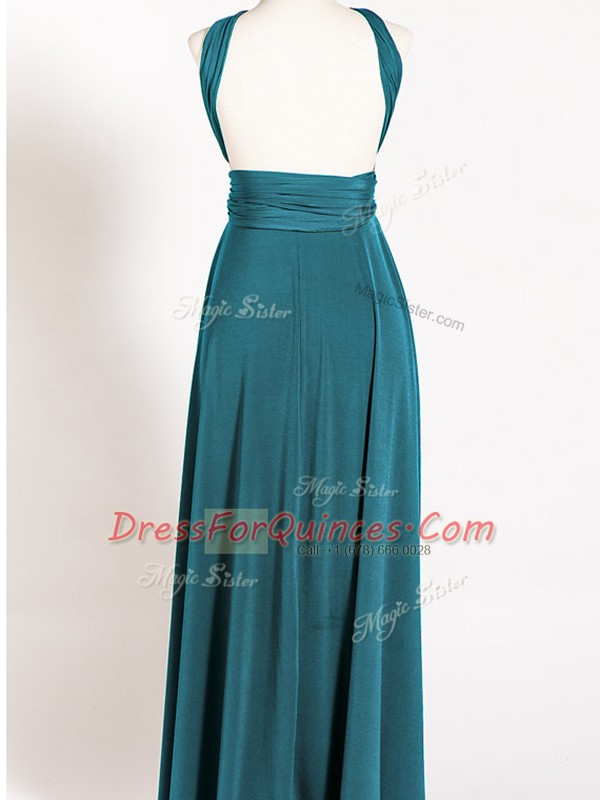 Teal Backless Straps Ruching Dama Dress for Quinceanera Chiffon Sleeveless