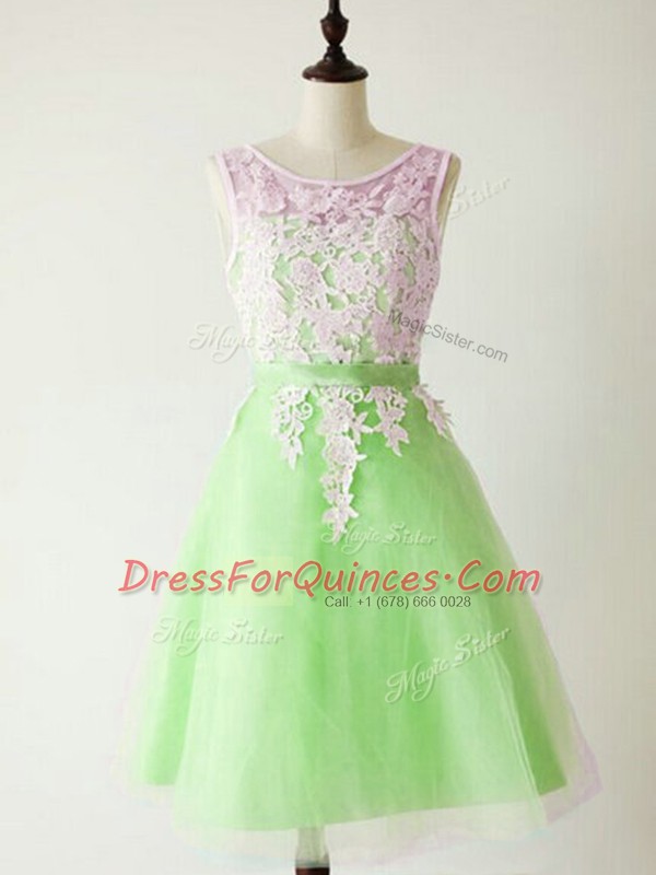 Trendy Lace Up Vestidos de Damas Lace Sleeveless Knee Length