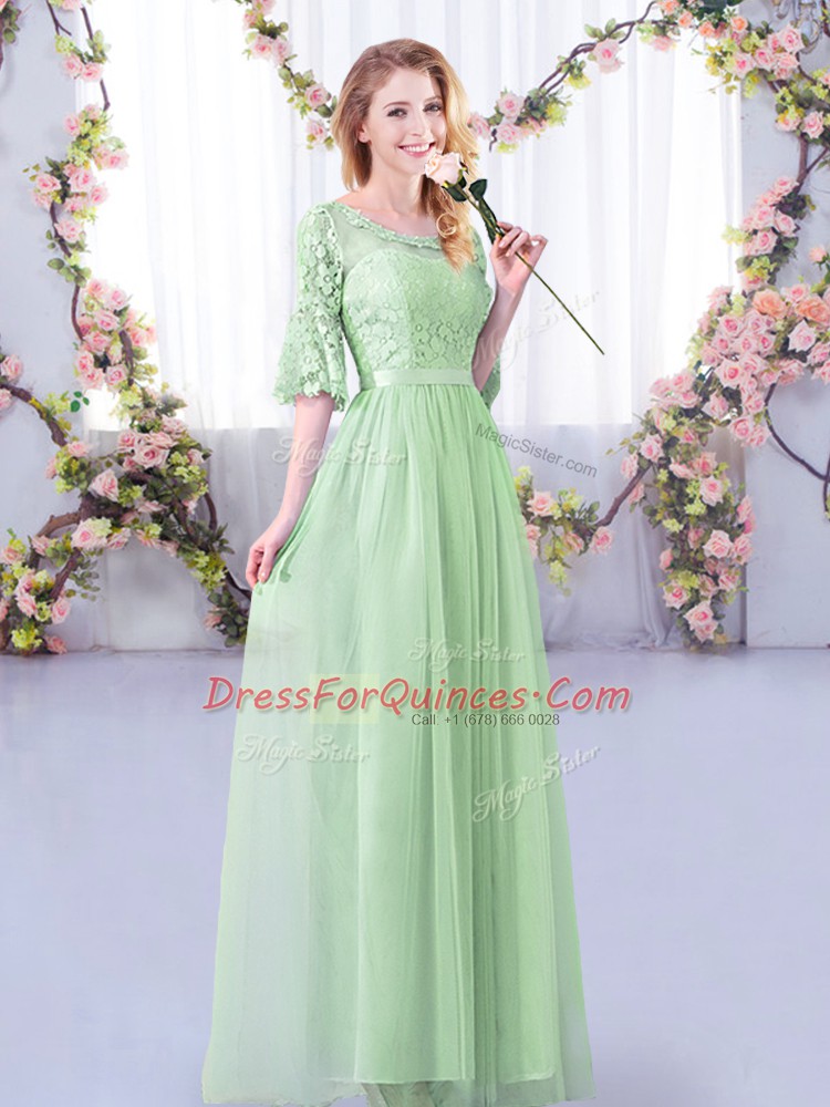 Unique Apple Green Scoop Side Zipper Lace and Belt Quinceanera Dama Dress Half Sleeves
