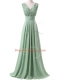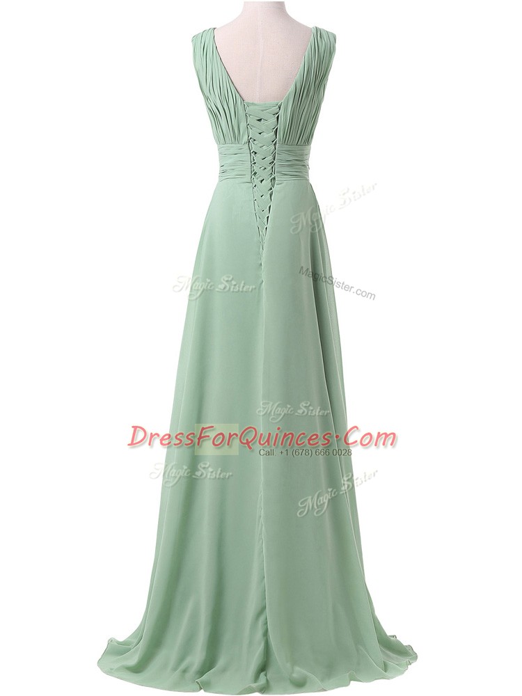 V-neck Sleeveless Lace Up Quinceanera Court of Honor Dress Apple Green Chiffon