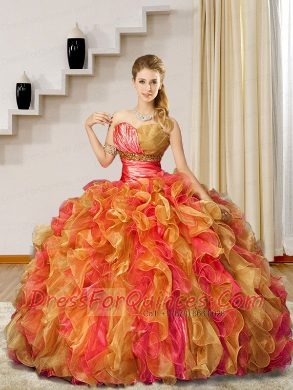 2015 Detachable Multi Color Sweet 16 Dress with Beading and Ruffles