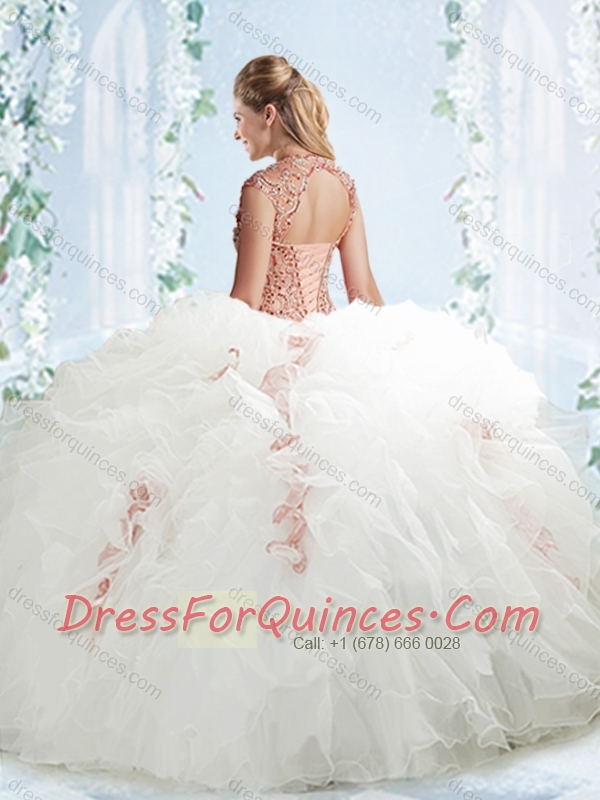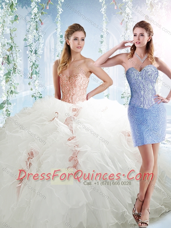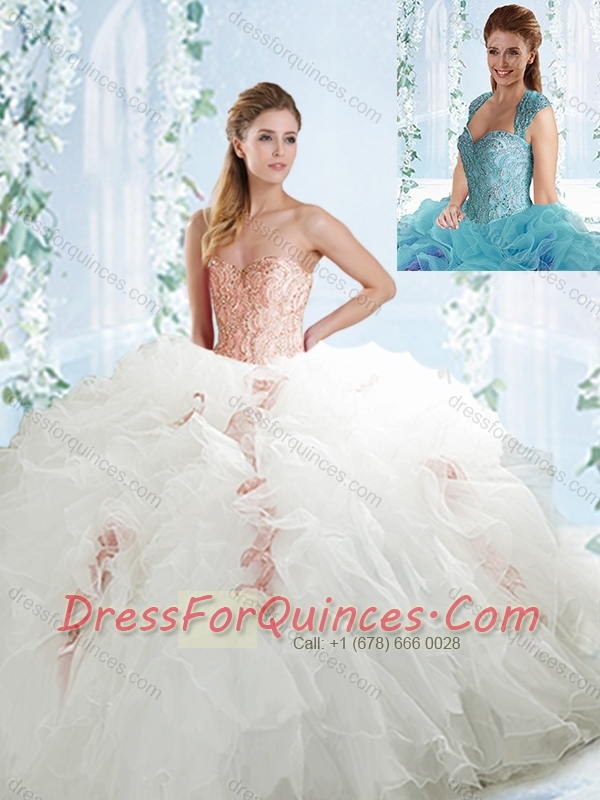Classical Organza White Detachable Quinceanera dresses with Beading and Ruffles