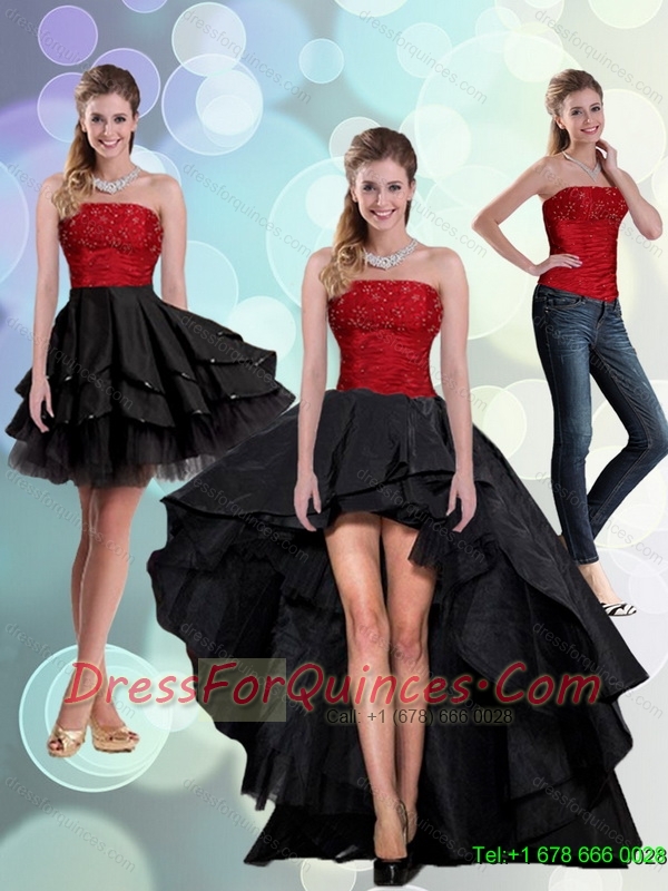 2015 Detachable Discount Strapless Beading Prom Dresses in Red and Black
