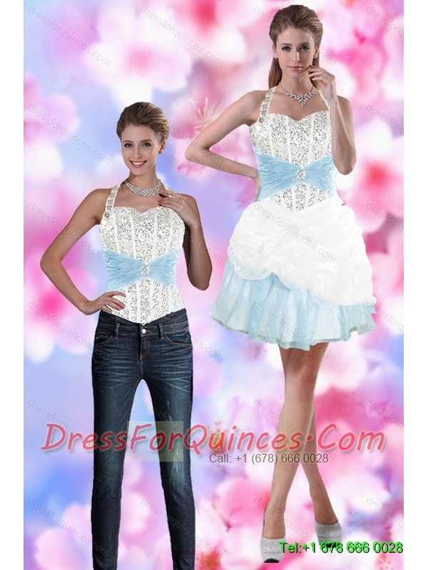Detachable 2015 Halter Top Prom Dress with Beading and Pick Ups