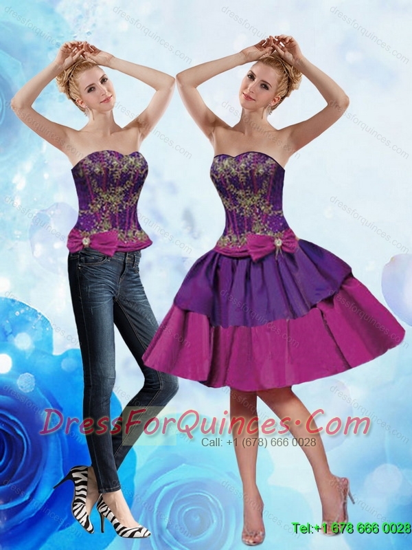 Detachable Modest Strapless Multi Color 2015 Prom Dress with Appliques and Bowknot