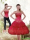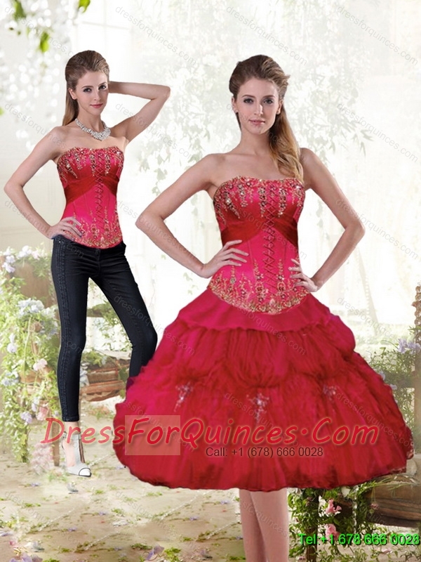 Detachable New Style Strapless Red 2015 Prom Dress with Beading