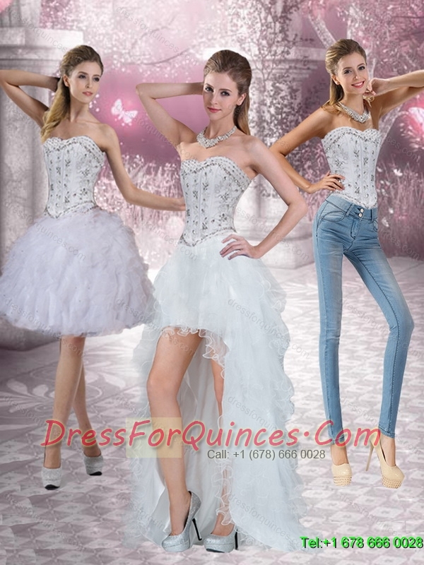 Detachable New Style Strapless White Prom Dresses with Ruffles and