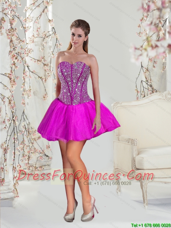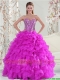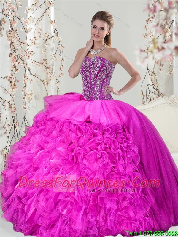 2015 Spring Detachable Hot Pink Sweet 16 Dresses with Beading and Ruffles