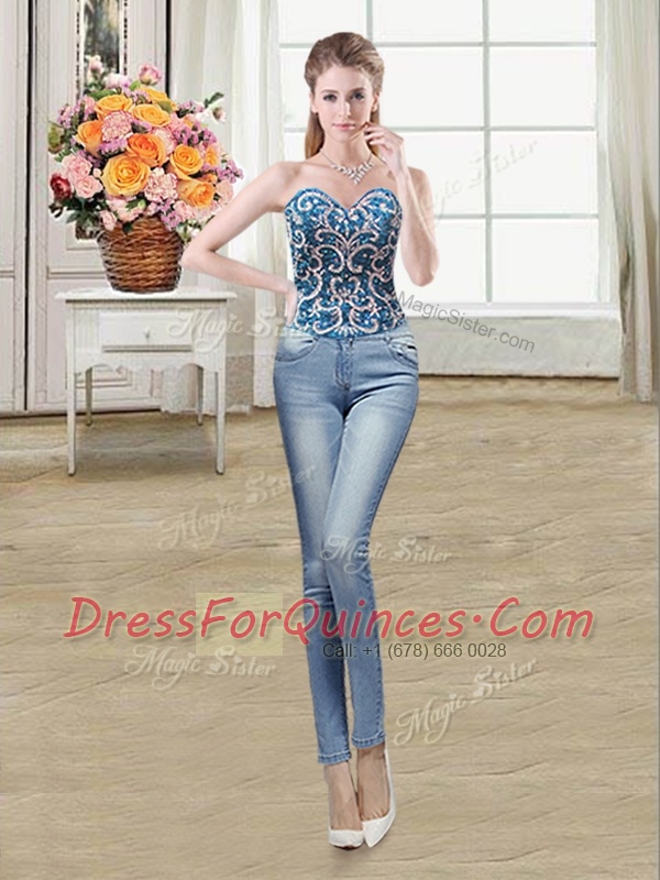 Adorable Three Piece Teal Lace Up Vestidos de Quinceanera Beading Sleeveless Floor Length
