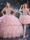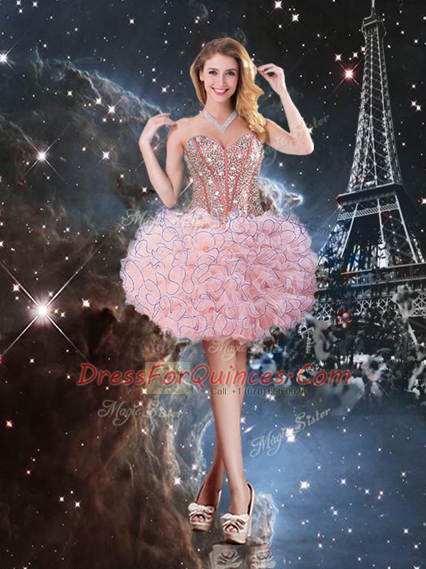 Baby Pink Quinceanera Gowns Military Ball and Sweet 16 and Quinceanera with Beading and Ruffles Sweetheart Sleeveless Lace Up