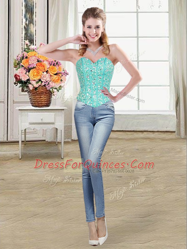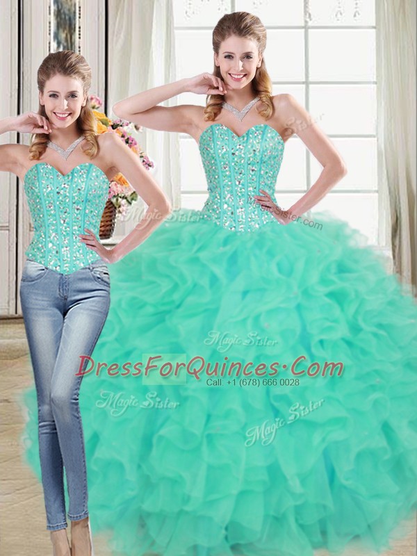 Beauteous Turquoise Lace Up 15 Quinceanera Dress Beading and Ruffled Layers Sleeveless Brush Train