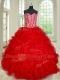Best Four Piece Red Quinceanera Gowns Military Ball and Sweet 16 and Quinceanera and For with Beading and Ruffles Sweetheart Sleeveless Lace Up