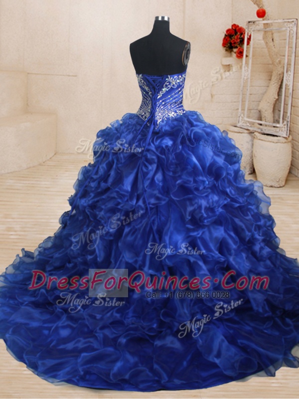 Classical Three Piece Sleeveless Brush Train Lace Up With Train Beading and Ruffles Sweet 16 Dresses