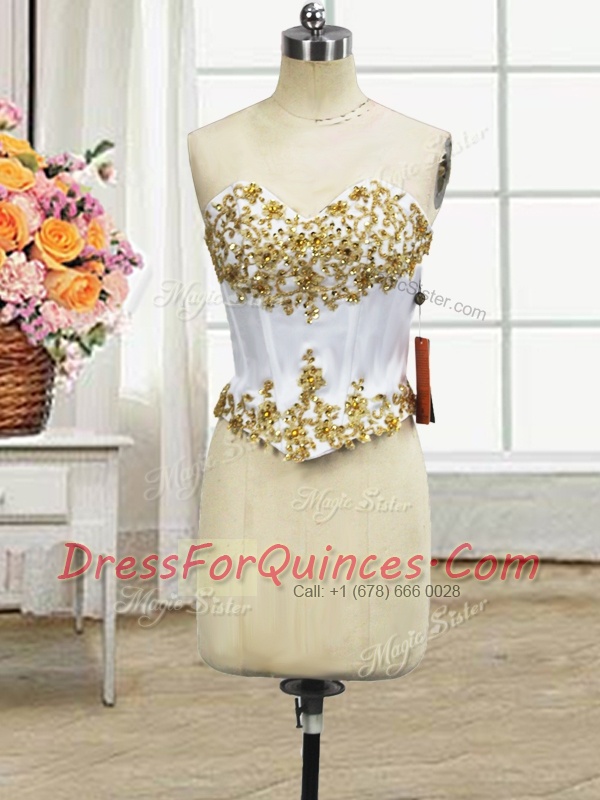 Colorful Three Piece Organza Sweetheart Sleeveless Lace Up Beading and Ruffled Layers Quinceanera Dress in White
