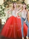 Coral Red Sleeveless Tulle Zipper Sweet 16 Dresses for Military Ball and Sweet 16 and Quinceanera