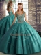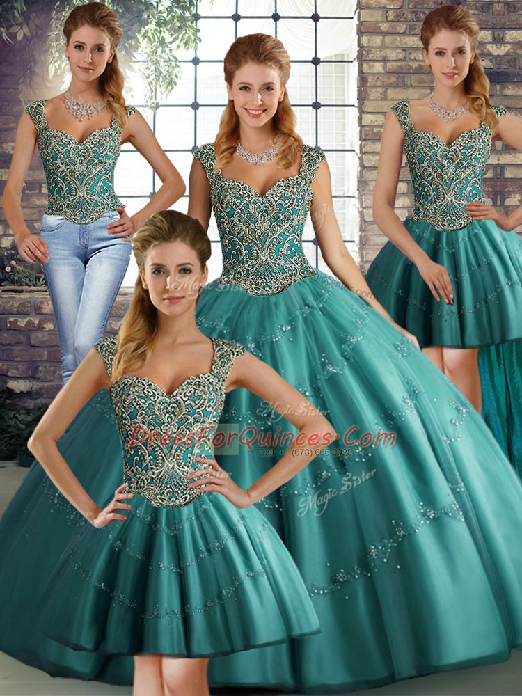 Custom Designed Teal Straps Lace Up Beading and Appliques Quinceanera Dresses Sleeveless