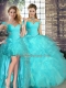 Custom Fit Aqua Blue Lace Up Off The Shoulder Beading and Ruffles Quinceanera Gowns Organza Sleeveless
