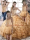 Customized Organza Sleeveless Vestidos de Quinceanera Brush Train and Beading and Ruffled Layers