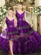 Customized Purple V-neck Backless Beading and Embroidery and Ruffles Sweet 16 Dresses Sleeveless