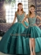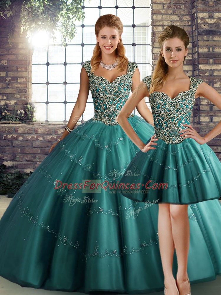 Customized Teal Straps Neckline Beading and Appliques Quinceanera Gowns Sleeveless Lace Up