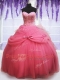 Customized Three Piece Sleeveless Tulle Floor Length Lace Up Quinceanera Dresses in Rose Pink with Beading and Bowknot