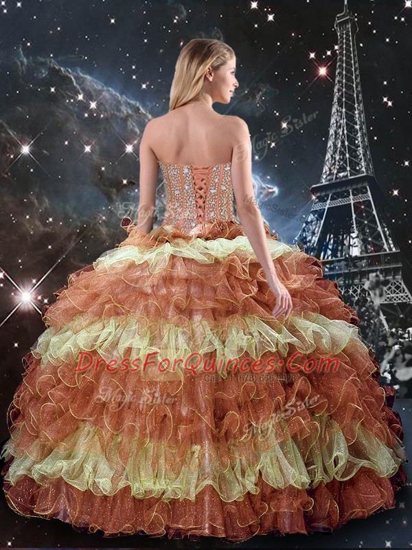 Dynamic Sweetheart Sleeveless Lace Up Quinceanera Dresses Multi-color Organza