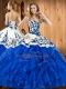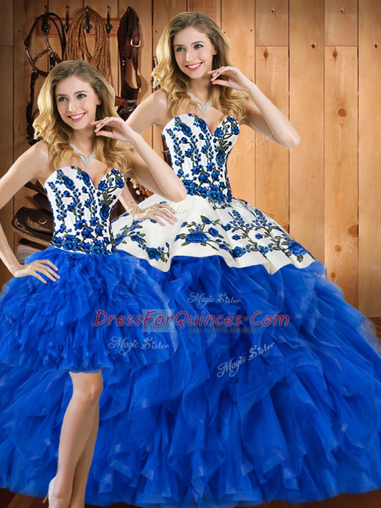 Elegant Blue Sweetheart Lace Up Embroidery and Ruffles 15th Birthday Dress Sleeveless