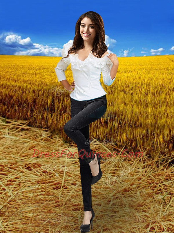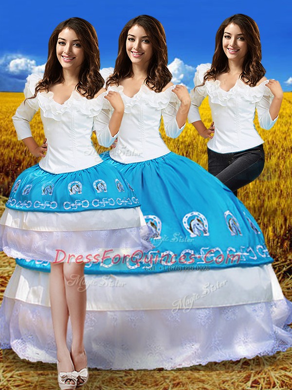 Elegant Taffeta 3 4 Length Sleeve Floor Length Quince Ball Gowns and Embroidery and Ruffles