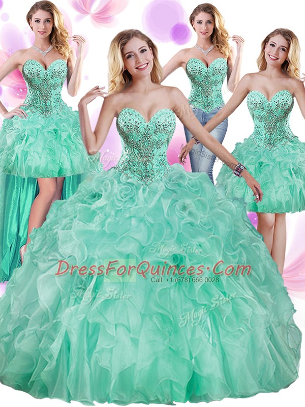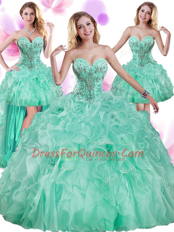 Enchanting Four Piece Floor Length Apple Green 15 Quinceanera Dress Sweetheart Sleeveless Lace Up