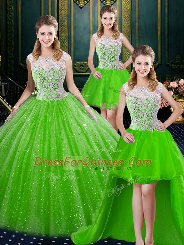 Exceptional Four Piece High-neck Sleeveless Brush Train Zipper 15 Quinceanera Dress Tulle