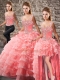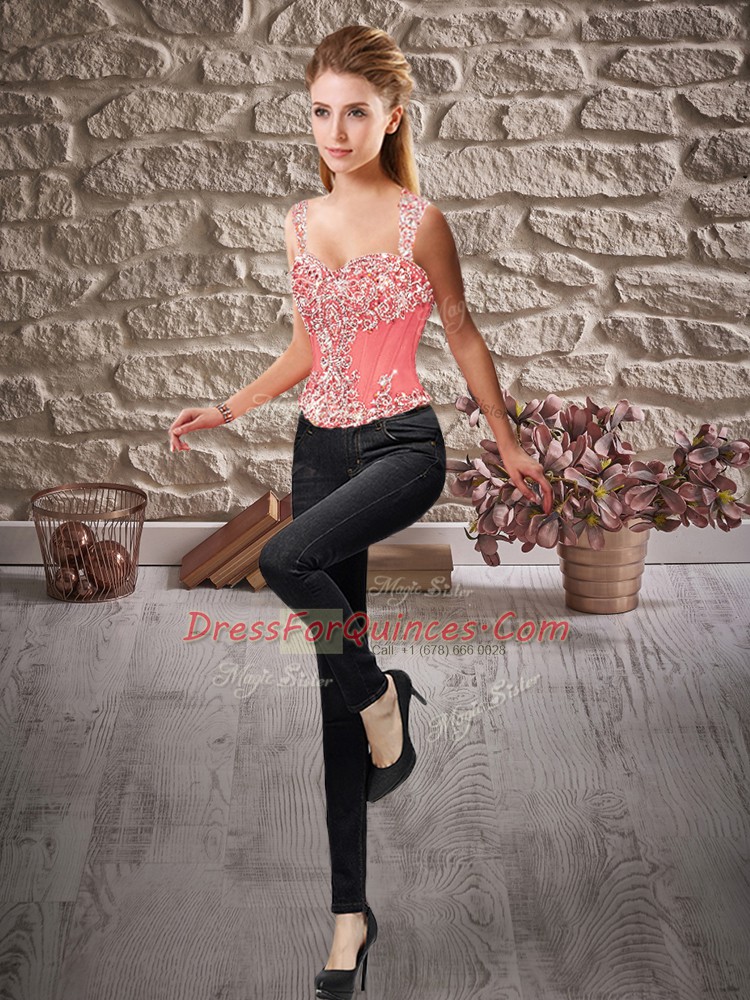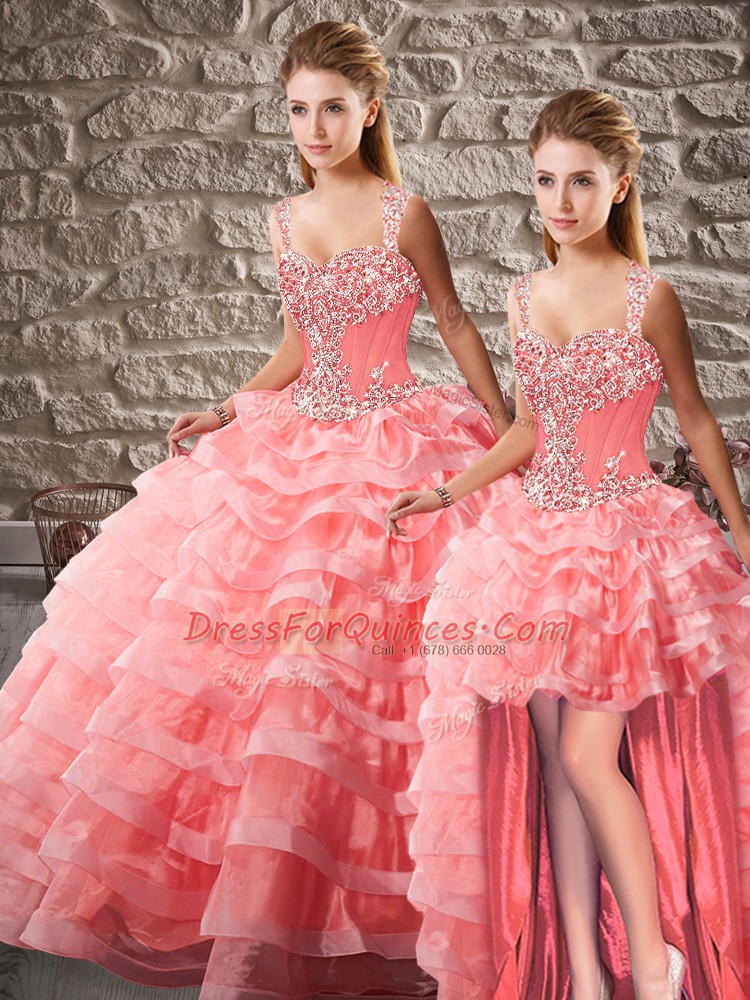 Exceptional Watermelon Red Sleeveless Court Train Beading and Ruffled Layers Quinceanera Gown