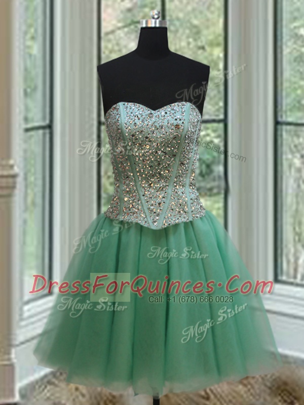 Fabulous Three Piece Apple Green Ball Gowns Tulle Sweetheart Sleeveless Beading Floor Length Lace Up Quinceanera Dress