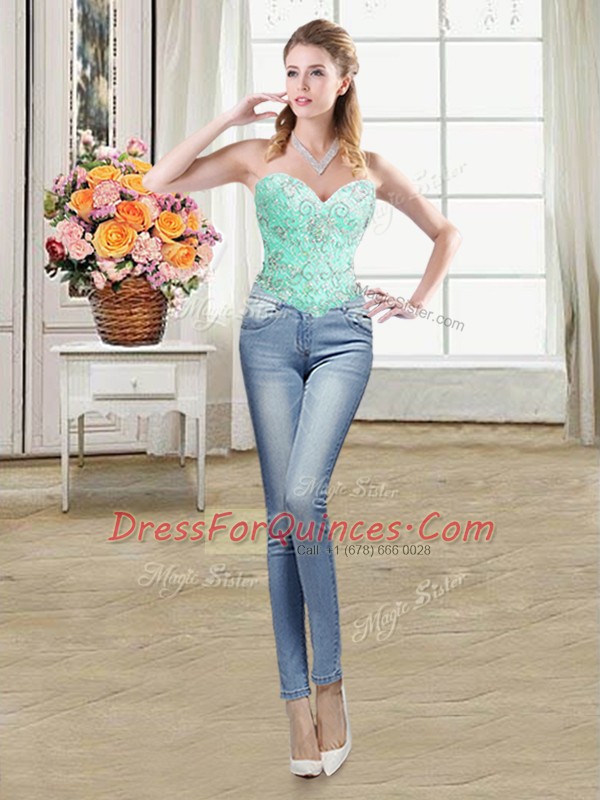 Four Piece Apple Green Organza Lace Up Sweetheart Sleeveless Floor Length Quince Ball Gowns Beading and Ruffles and Pick Ups