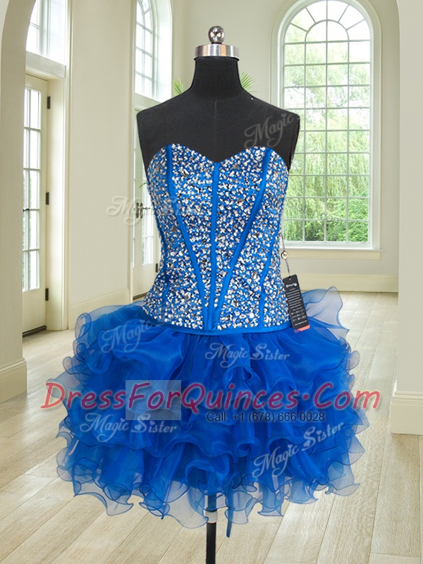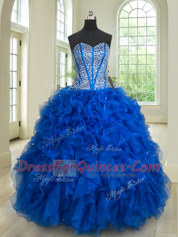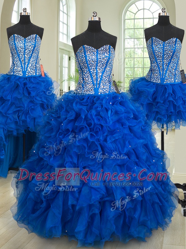 Four Piece Floor Length Royal Blue Quinceanera Gowns Sweetheart Sleeveless Lace Up