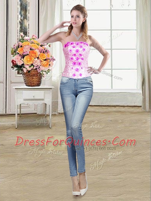 Four Piece Fuchsia Tulle Lace Up Strapless Sleeveless Floor Length Quinceanera Dresses Beading and Appliques and Ruffles