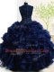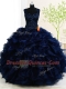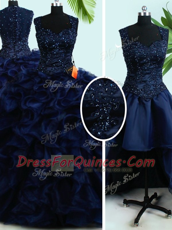 Four Piece Straps Sleeveless Organza Floor Length Zipper Vestidos de Quinceanera in Navy Blue with Beading and Ruffles
