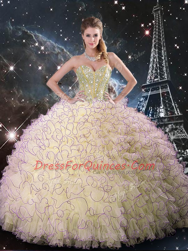 Glorious Light Yellow Lace Up Quinceanera Dress Beading and Ruffles Sleeveless Floor Length