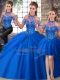 High Class Blue Quinceanera Gown Tulle Brush Train Sleeveless Beading and Pick Ups