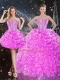 High Quality Sweetheart Sleeveless Sweet 16 Quinceanera Dress Floor Length Beading and Ruffles Fuchsia Organza