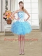 Hot Sale Three Piece Sleeveless Floor Length Beading and Appliques and Ruffles Lace Up 15th Birthday Dress with Light Blue
