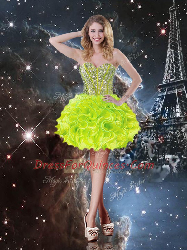 Nice Yellow Green Lace Up Sweetheart Beading and Ruffles Quinceanera Gowns Organza Sleeveless