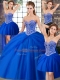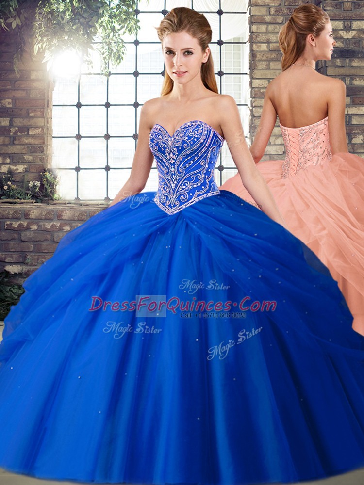 Noble Royal Blue Tulle Lace Up Quinceanera Dresses Sleeveless Brush Train Beading and Pick Ups
