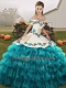 Organza Sleeveless Floor Length Sweet 16 Quinceanera Dress and Embroidery and Ruffled Layers
