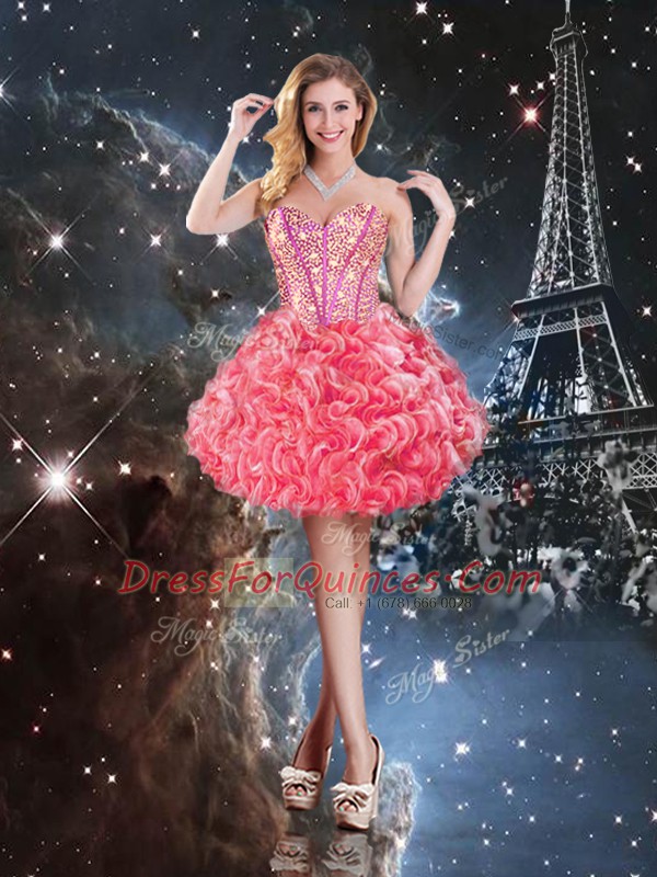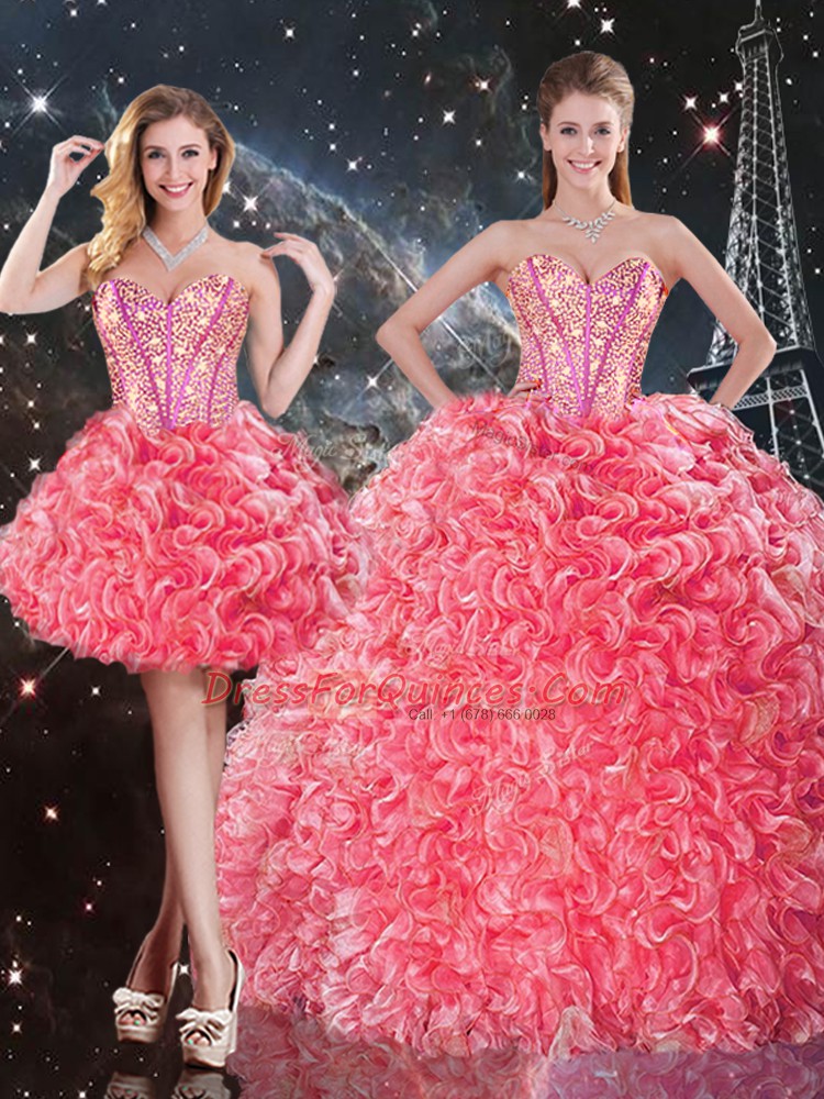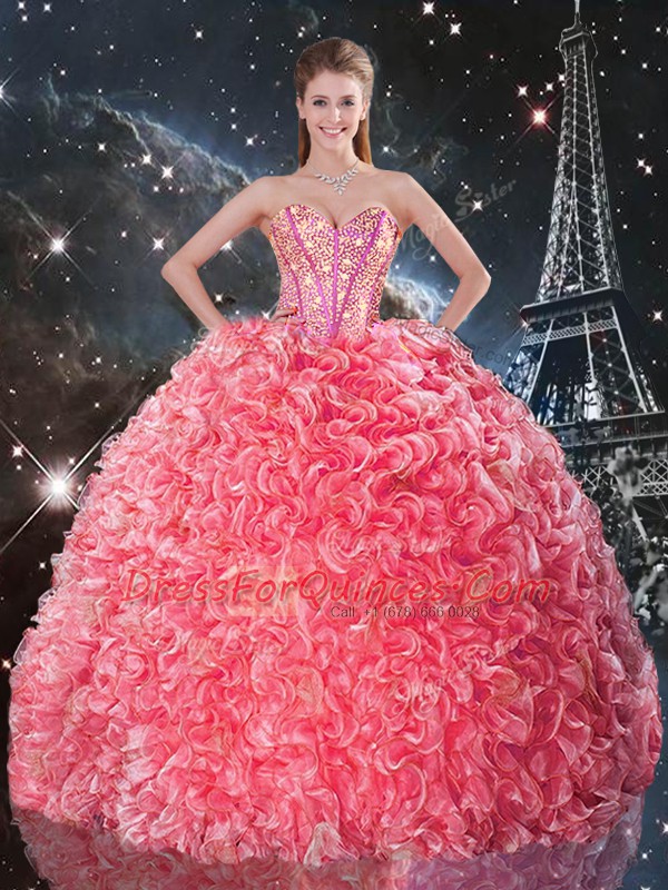 Perfect Coral Red Organza Lace Up Sweetheart Sleeveless Floor Length Quinceanera Gowns Beading and Ruffles