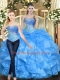 Perfect Sweetheart Sleeveless Lace Up 15th Birthday Dress Baby Blue Organza