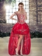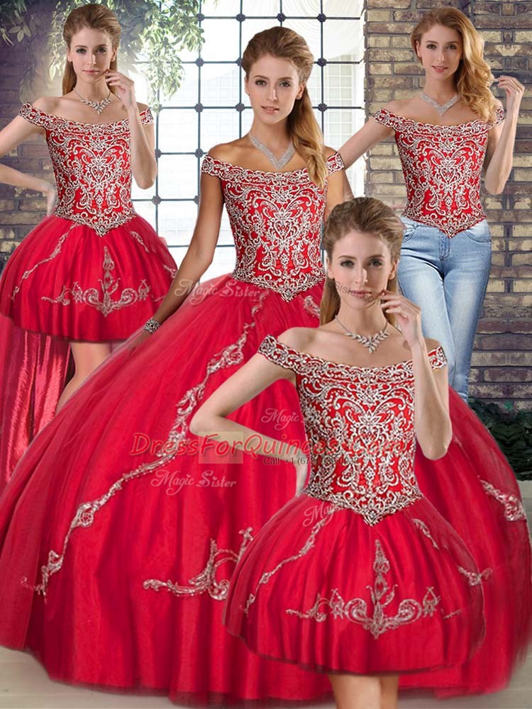 Popular Floor Length Lace Up Sweet 16 Dresses Red for Military Ball and Sweet 16 and Quinceanera with Beading and Embroidery