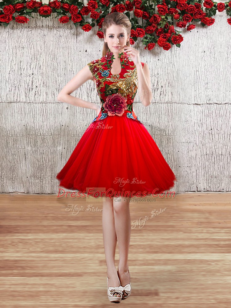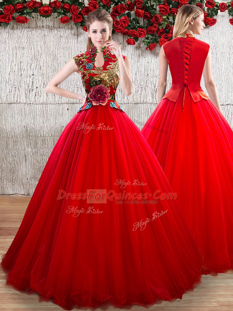 Red Sleeveless Organza Lace Up 15 Quinceanera Dress for Military Ball and Sweet 16 and Quinceanera