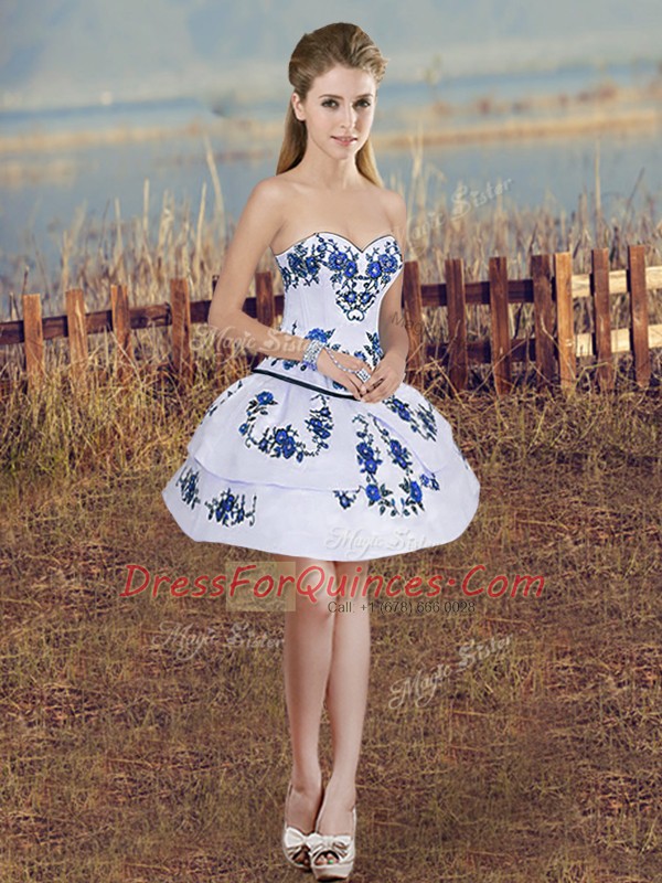 Royal Blue Ball Gowns Tulle Sweetheart Sleeveless Embroidery and Bowknot Floor Length Lace Up Ball Gown Prom Dress
