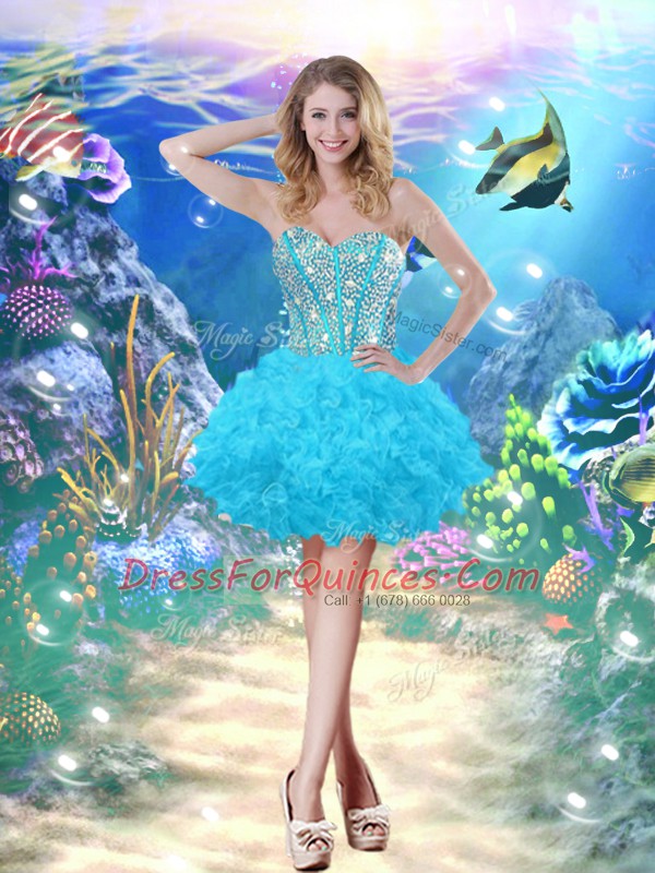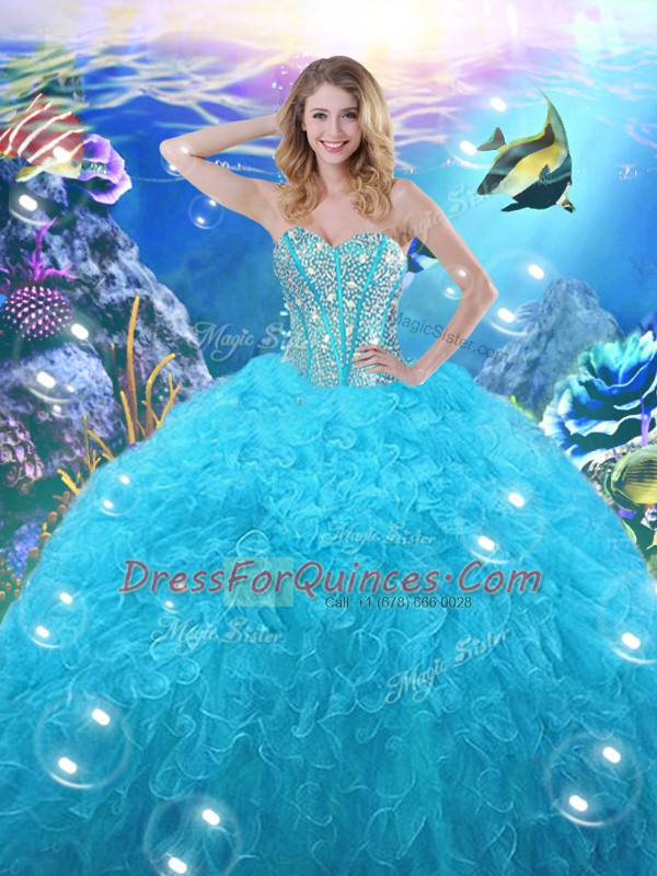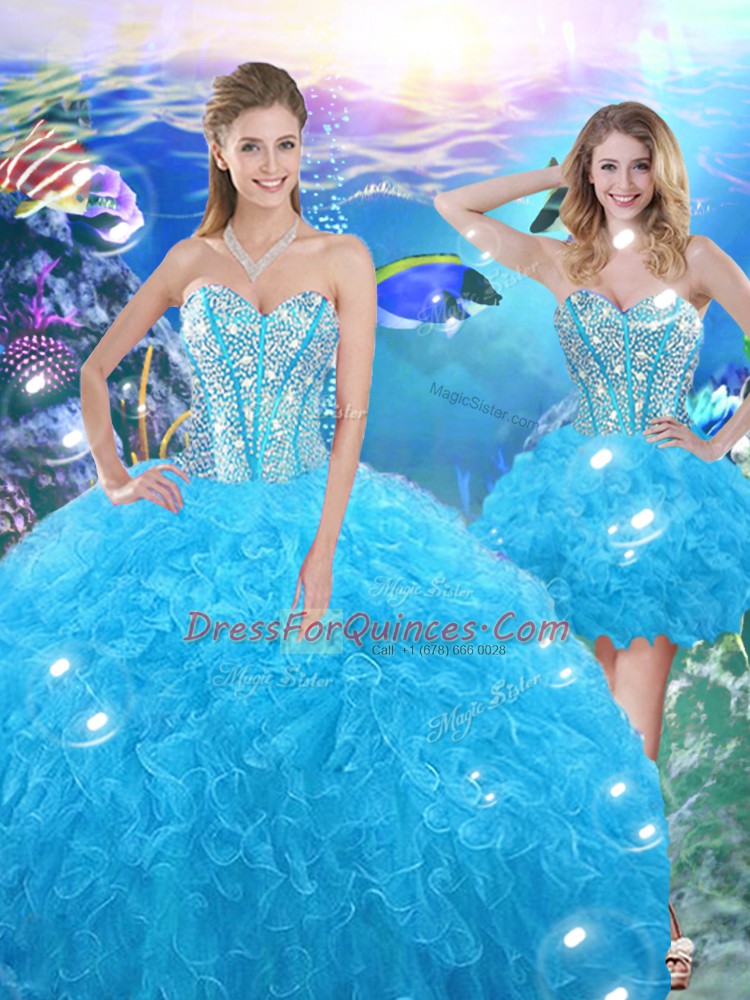 Simple Baby Blue Lace Up Sweetheart Beading and Ruffles Quinceanera Gowns Organza Sleeveless