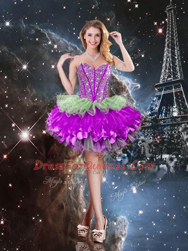Simple Multi-color Lace Up Sweetheart Beading and Ruffles and Ruffled Layers Quinceanera Gown Organza Sleeveless